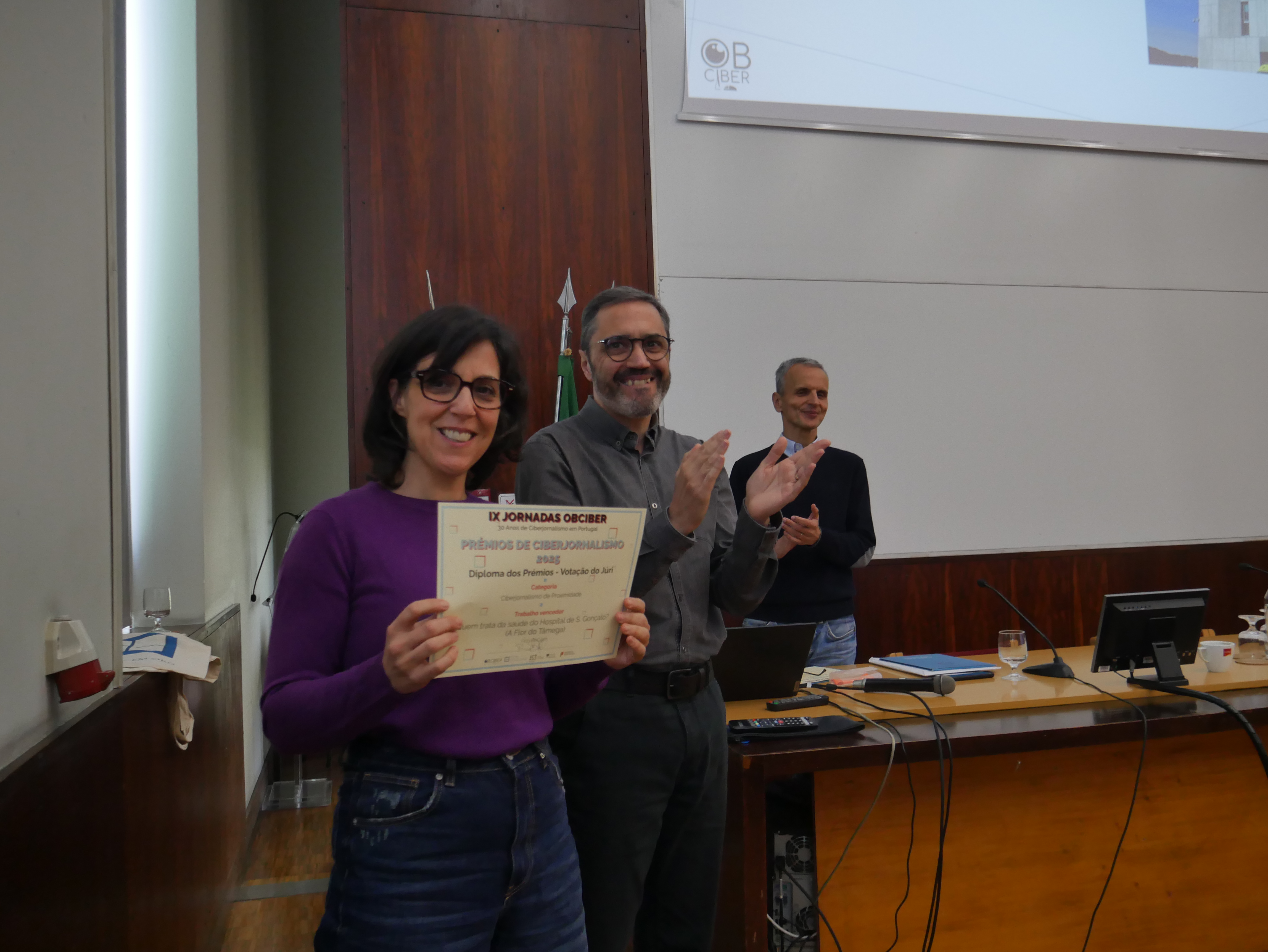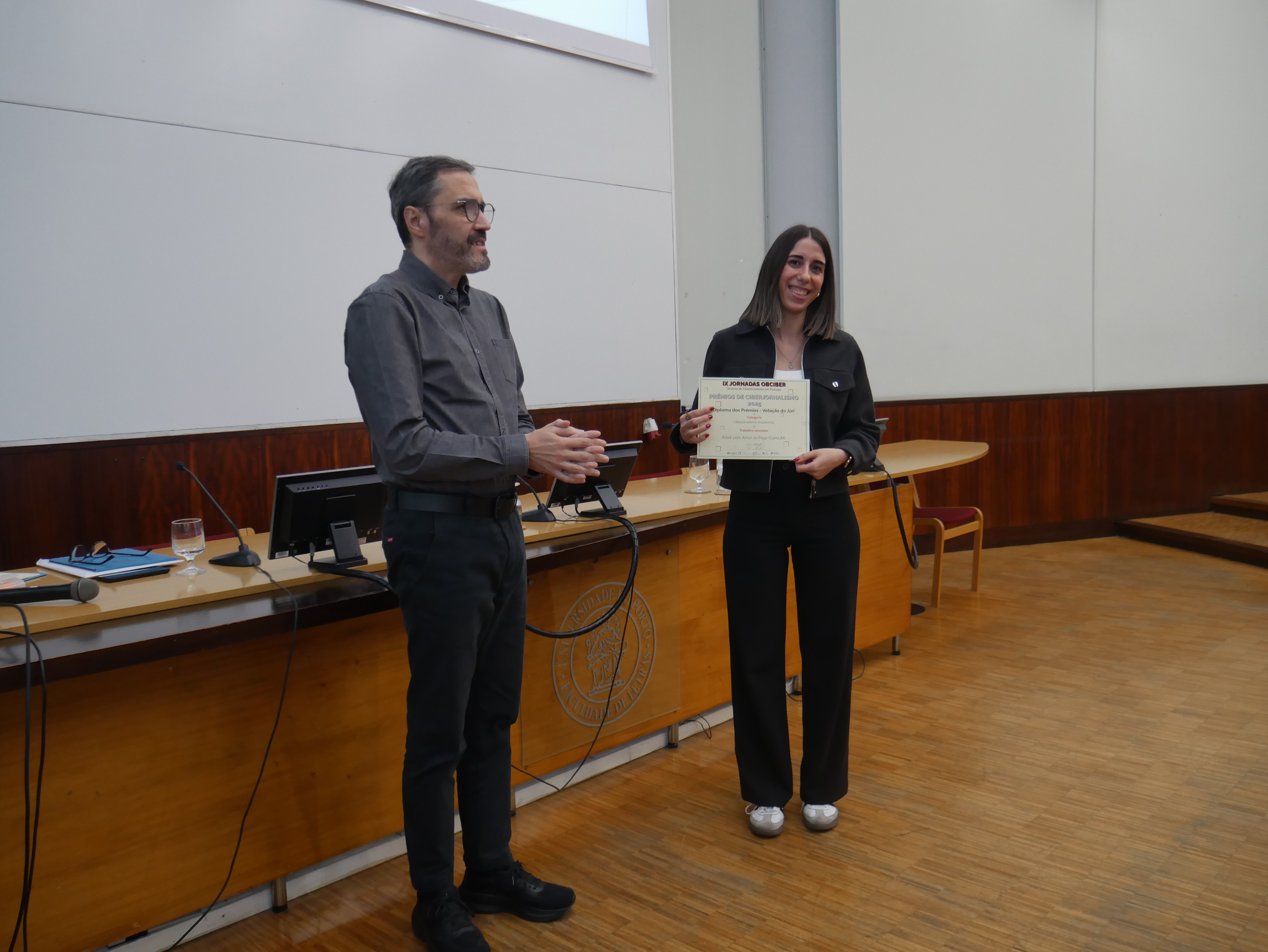 O anúncio dos vencedores da 18ª Edição dos Prémios de Ciberjornalismo teve lugar no final das IX Jornadas ObCiber, que decorreu hoje, no Anfiteatro Nobre da Faculdade de Letras, da Universidade do Porto.