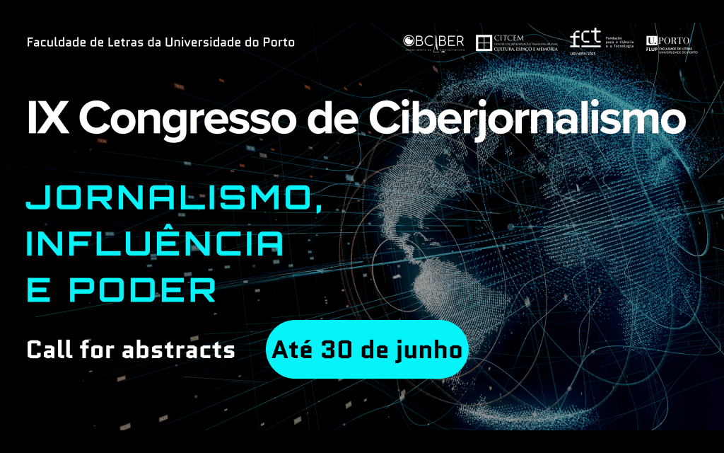 A organização do IX Congresso Internacional de Ciberjornalismo (#9COBCIBER) convida investigadores interessados a submeter propostas de comunicações a apresentar no Congresso, a decorrer nos dias 18 e 19 de novembro de 2026, no Anfiteatro Nobre da Faculdade de Letras da Universidade do Porto.
